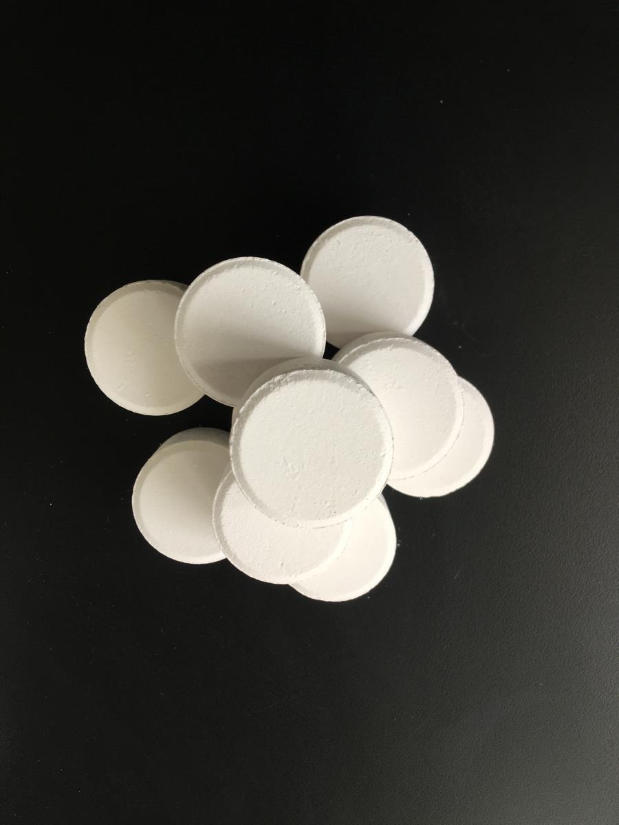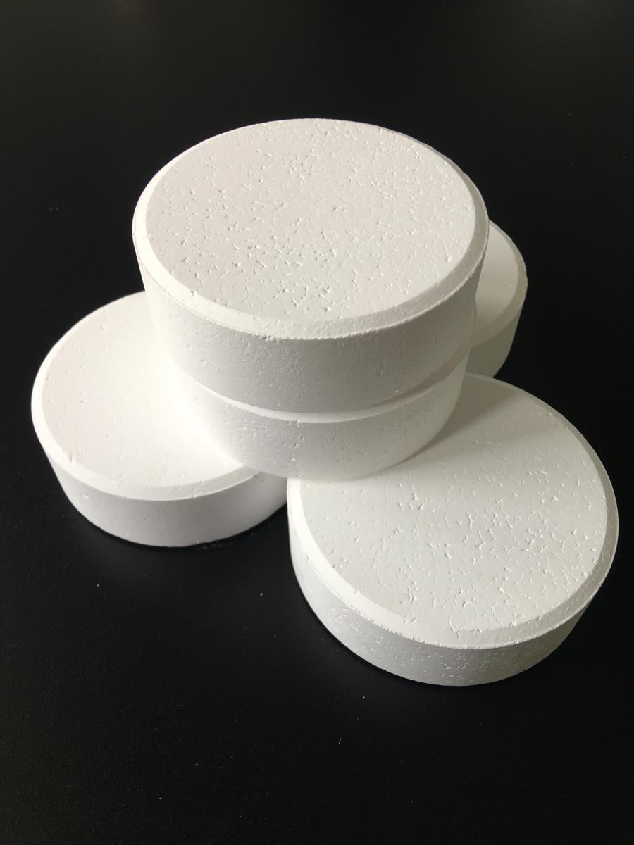 有刺激性氣味,有機(jī)化合物,白色結(jié)晶性粉末或粒狀固體,具有強(qiáng)烈的氯氣刺激味。pH值(1%水溶液)2.6~3.2,白色結(jié)晶粉劑、粒劑、片狀(3.3克片20克片200克片,500克片等)